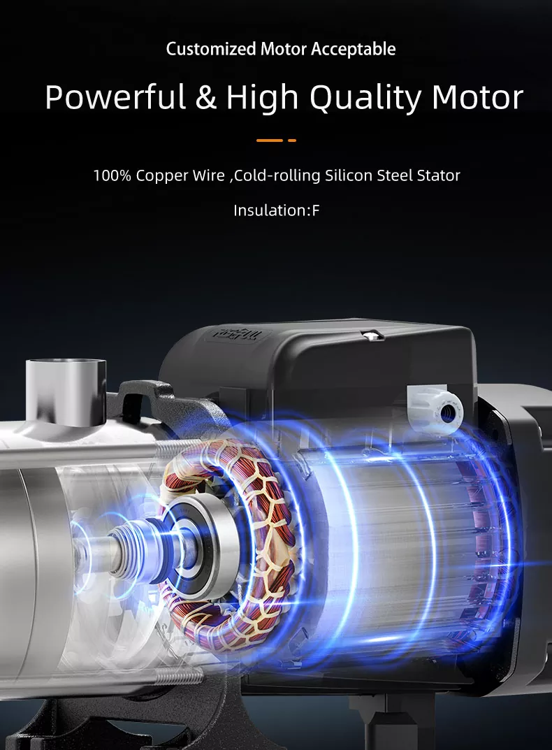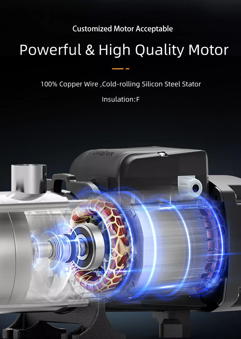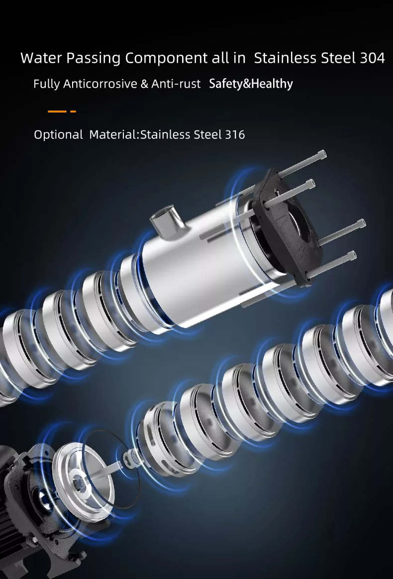 4. Енергоефективність: завдяки вдосконаленій конструкції та передовій технології наш багатоступеневий насос оптимізує споживання енергії, допомагаючи вам зменшити експлуатаційні витрати, зберігаючи максимальну продуктивність.