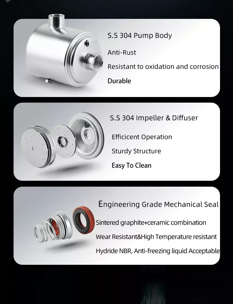 3. Різноманітність застосувань: незалежно від того, чи потрібно вам підвищити тиск води в будівлях, системах поливу чи промислових процесах, цей насос досить універсальний, щоб з легкістю задовольнити широкий спектр потреб.