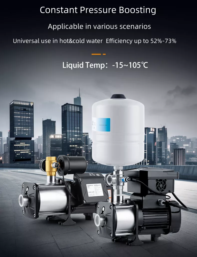 Серія серії CHM8/IV Розумний інверторний горизонтальний відцентровий насос з нержавіючої сталі є відносно зрілим продуктом на ринку, який наразі має компактну структуру та стабільну роботу, низький рівень роботи, пошкодження до 44-70%. Усі компоненти проходження води виготовлені з нержавіючої сталі AISI304. Він широко використовується в